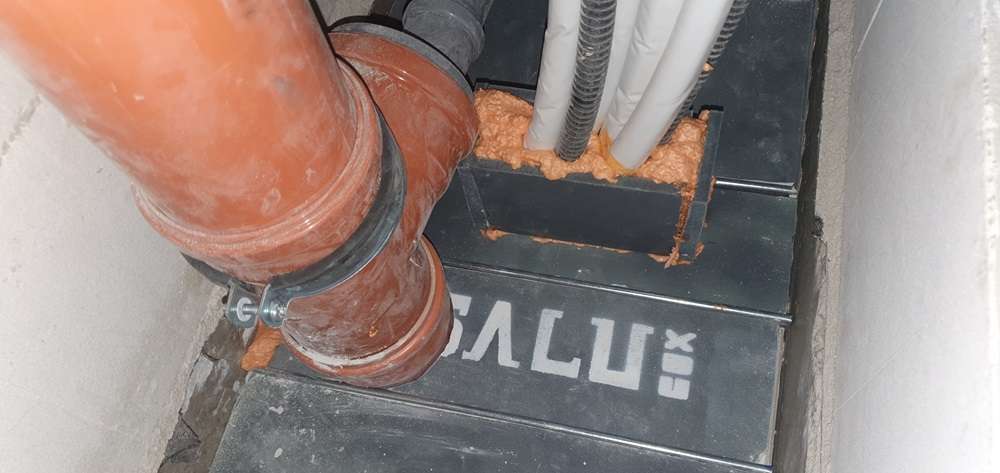 A gépészeti szerelést követően az akna közöket kizsaluzzuk egy kompozit anyaggal és kibetonozzuk.